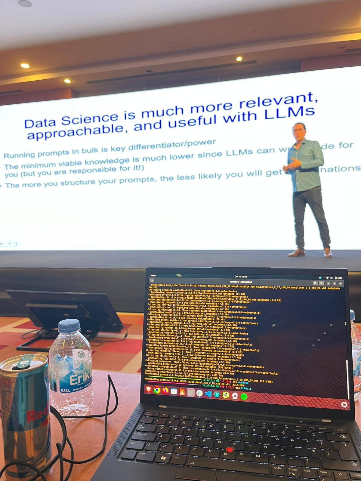 If you're using Python for SEO things™ then don't be late to the party like I was and install advertools package. I saw the author, Elias Dabbas today at Search 'n Stuff and wow, I can't believe I had slept on this (and remade the Python wheel so many times). Some things you can easily do with advertools: // Crawl entire websites to audit on-page SEO elements, extract titles, headings, meta tags, and important attributes for technical reviews. // Analyse and parse robots.txt files to assess and bulk-test crawl directives. // Download and process XML sitemaps for site structure and indexability analysis. // Scrape and analyse SERP results to monitor keyword rankings or perform competitor research. // Conduct text and content analysis, including word frequency and stopword filtering. // Automate data collection, reporting, and common repetitive SEO tasks at scale. Picture: Me watching Elias and immediately doing pip install advertools 🐱