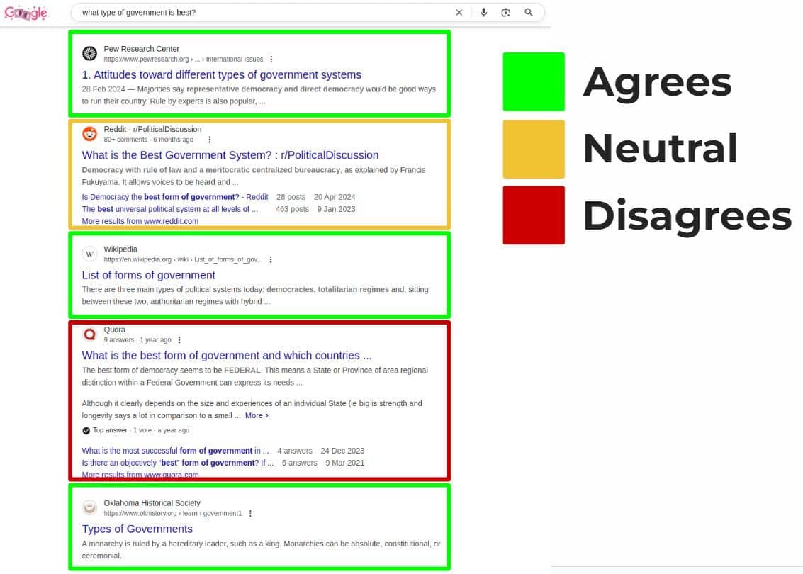But, this CAN answer why you are not ranking. If you've produced "agree with consensus" content and your client is saying "why don't we rank, our content is better by every measure of what is in #2 and #4" - that may be true, but Google specifically wants neutral or disagreeing documents for that place. ☝️