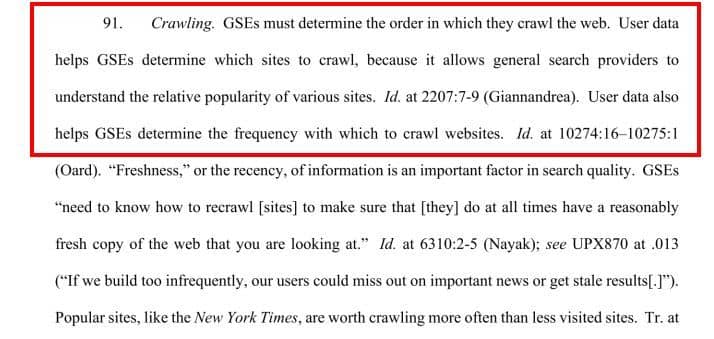 The DOJ documentation told us some of the factors that Google uses to determine how often to crawl your website: