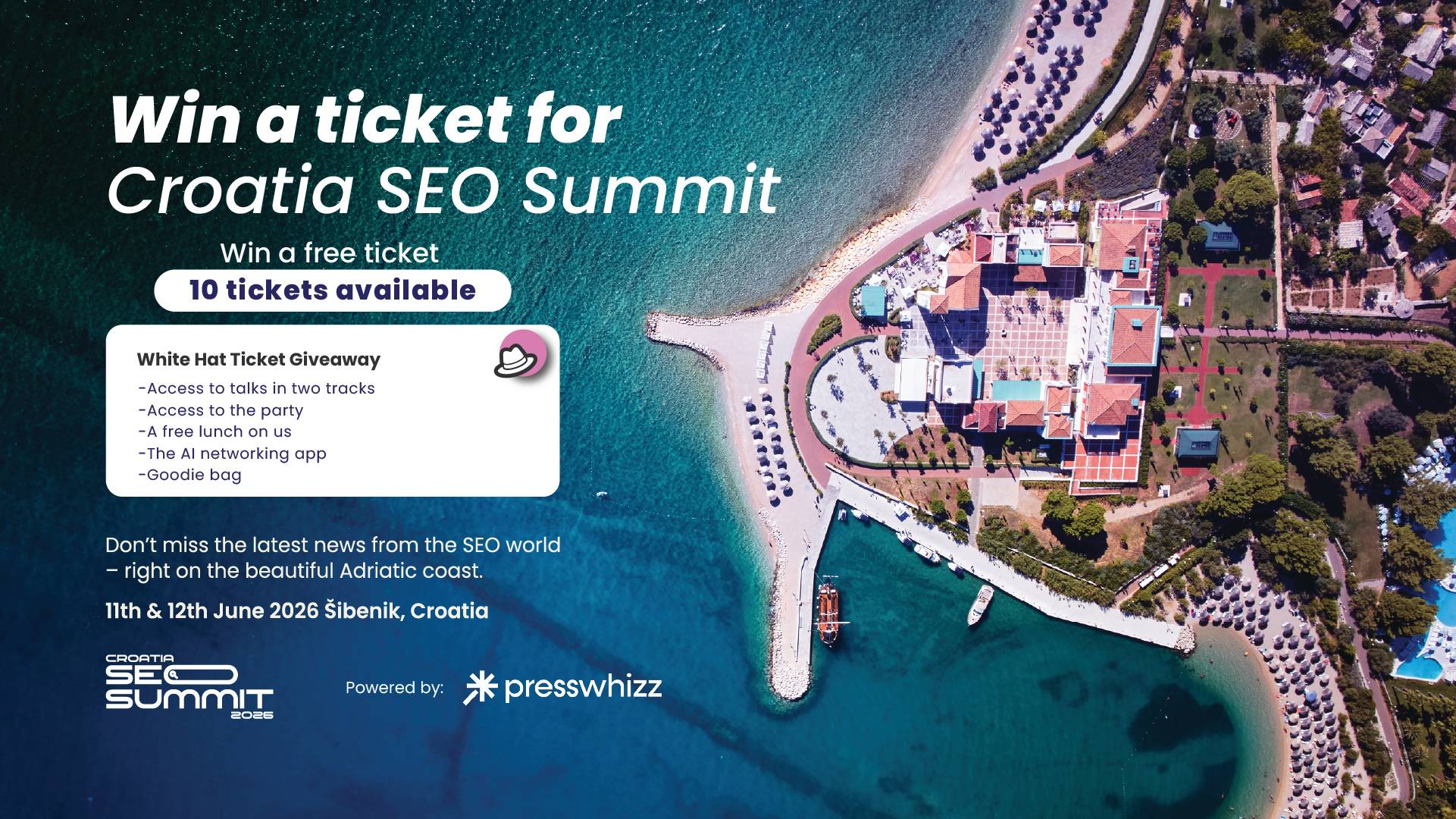 Croatia SEO Summit is giving away 10 White Hat tickets for the conference in Šibenik on June 11-12, 2026.