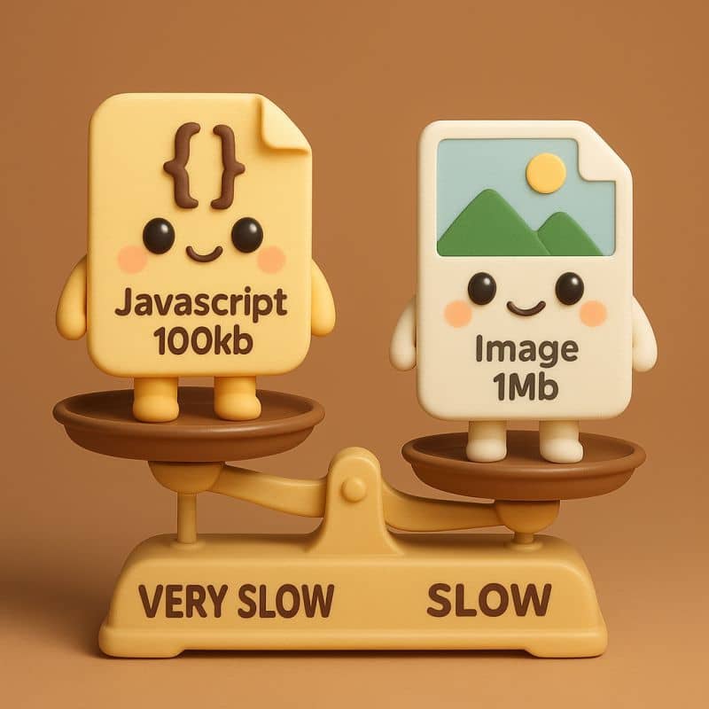 100Kb of Javascript may have more of a performance impact on your website than a "heavier" 1Mb image file. While browsers are quite efficient at handling images, the process of downloading, parsing, compiling and executing JS is far more nuanced. This tip came from Martin Splitt during the Tech SEO Summit this year. So you can argue with him if you think it's wrong 🤣