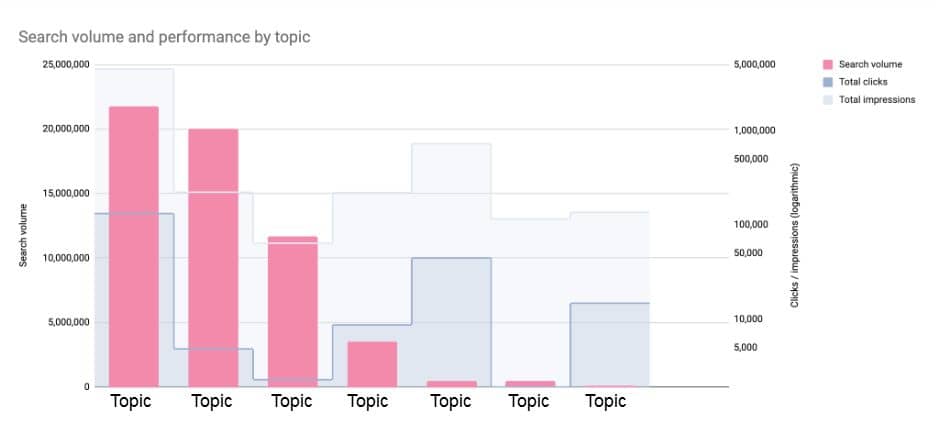 An overview of category-level searches vs current performance is a simple way to help map your SEO strategy. 🗺️ Comparing the sum of category-level searches versus your current impressions and clicks can quickly highlight areas where there is an opportunity, maybe where you're not performing, or where you don't have existing content.
