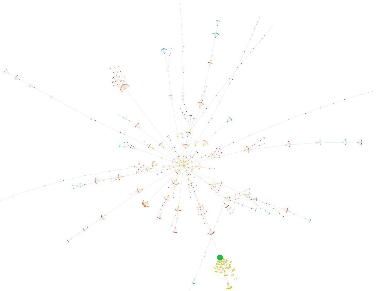 For instance, the long "trails" are paginated page sets, and hovering over the highlighted nodes shows the URLs of content pages that are only accessible via these pages. This immediately shows me: